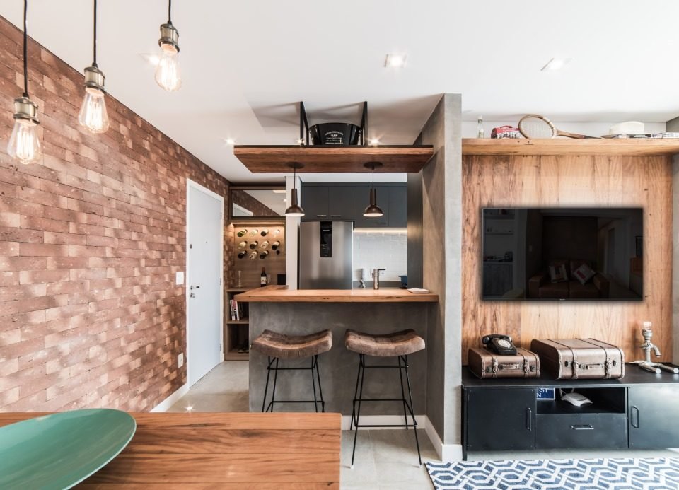 Apartamento pequeno traz estilo rústico sem abrir mão do conforto