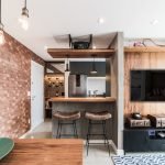 A principal tarefa do arquiteto Bruno Moraes, do escritório Bruno Moraes Arquitetura, foi integrar cozinha, sala de estar e varanda de um modo que os espaços dialogassem entre si. “Além da impressão de amplitude gerada pela integração, esses ambientes tinham funções conectadas no dia a dia. Fazia todo sentido criar um único ambiente e explorar melhor o potencial desses espaços”, comenta o profissional.